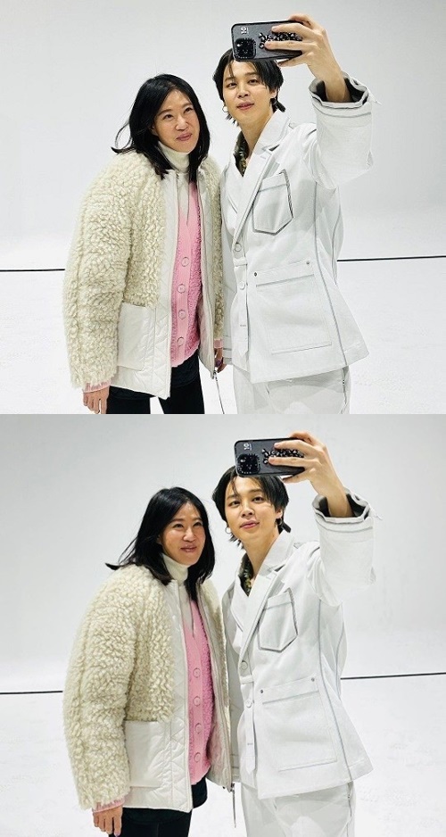 JIMINが自らスマホを持って、写真を撮影している。2人の温かい表情が印象的だ。特に自然体のJIMINからは優れたビジュアルはもちろん、優しい人柄が伝わってくるようだ。