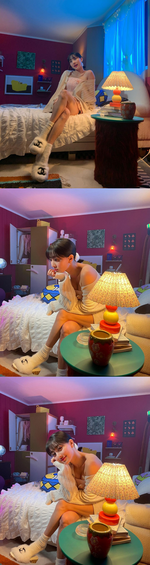 写真にはルームウェアを着て、ベッドでポーズをとるジヒョの姿が。これは、英語シングル『MOONLIGHT SUNRISE』のMVの撮影時に撮ったとみられる。