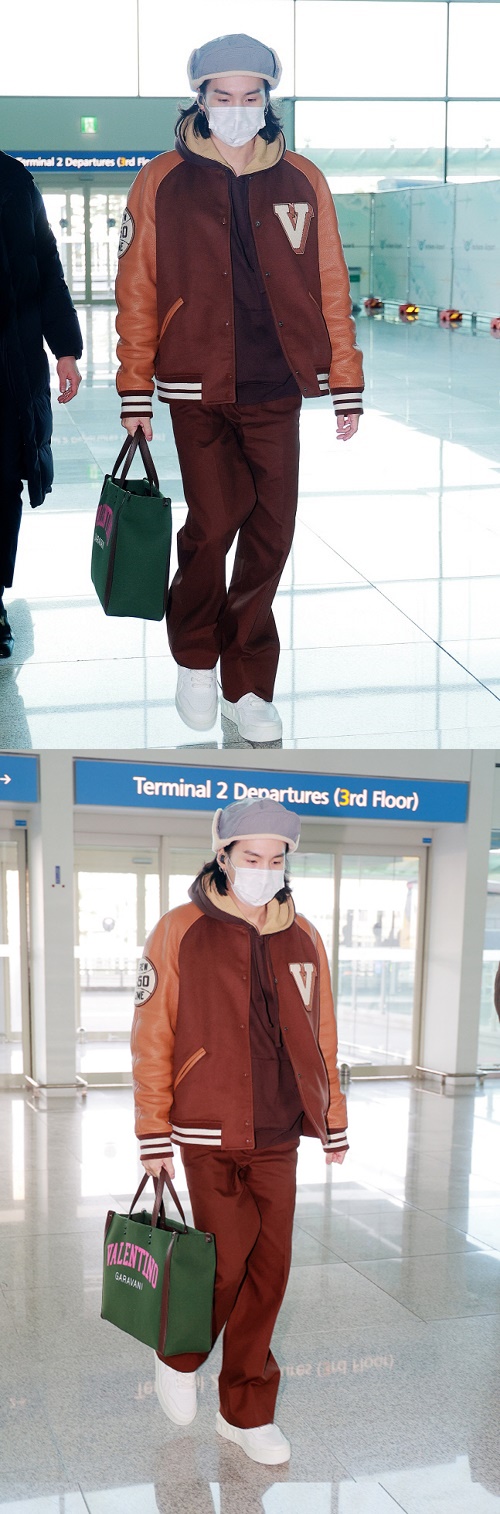 同日、SUGAはブラウンカラーのスタジアムボマージャケットにブラウンスラックスを合わせ、ダンディさとカジュアルの適切な組み合わせでファッショニスタとしての魅力を誇った。