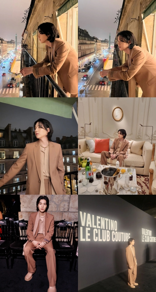 SUGAは去る1月25日、ヴァレンティノ(VALENTINO)がパリで発表した「2023年春夏オートクチュールコレクション ‘ヴァレンティノ ル クラブ クチュール’」に参加して、グローバルアンバサダーらしい面貌を見せつけた。