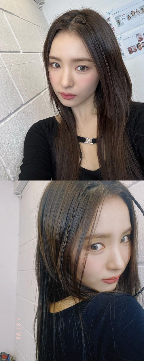 写真には両サイドに編み込みを施したシン・セギョンの姿が。コスメの撮影だろうか、ばっちりメイクをしたシン・セギョンがカメラを見つめている。ピンクのチークが良く似合う。