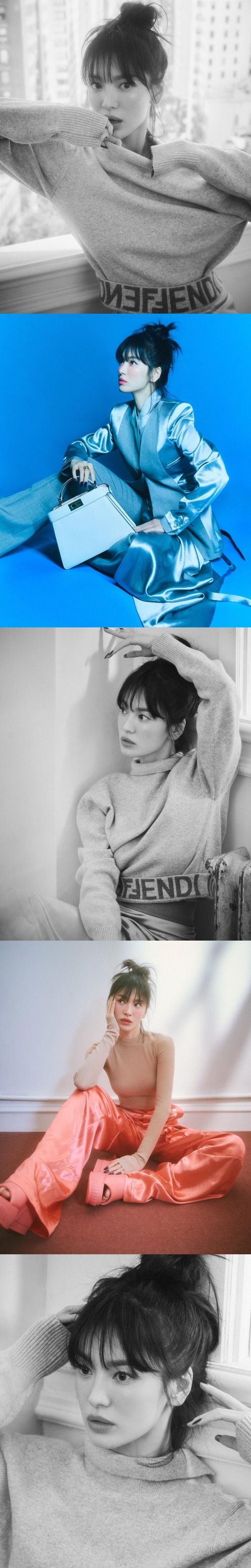 アンバサダーを務める「FENDI(フェンディ)」の最新アイテムを、優雅かつラブリーに着こなしているソン・ヘギョ。現在Netflixで配信中のドラマ『ザ・グローリー~輝かしき復讐~』に登場する姿とは異なる華やかなビジュアルで、視線を捉えた。