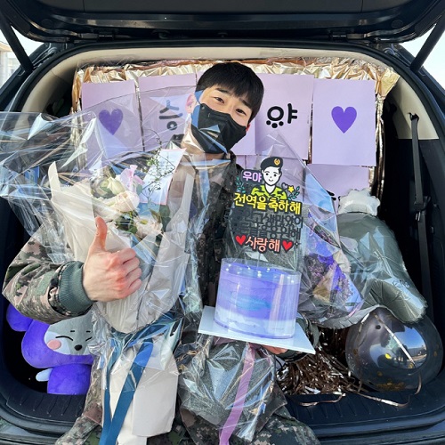 ハン・スンウは1月27日に別途の行事なしに非公開で除隊し、除隊直後に所属事務所のSNSチャンネルを通じて花束とお祝いのケーキを持った写真を公開。グローバルファンの関心を集中させた。
