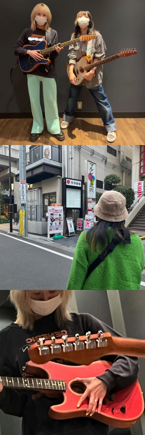 写真をのぞくと、Tシャツやギターなど、さまざまなおそろいアイテムを公開したり下北沢を散歩したりするチェヨンとあいみょんの姿が収められている。