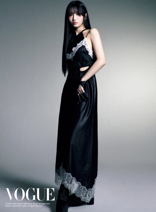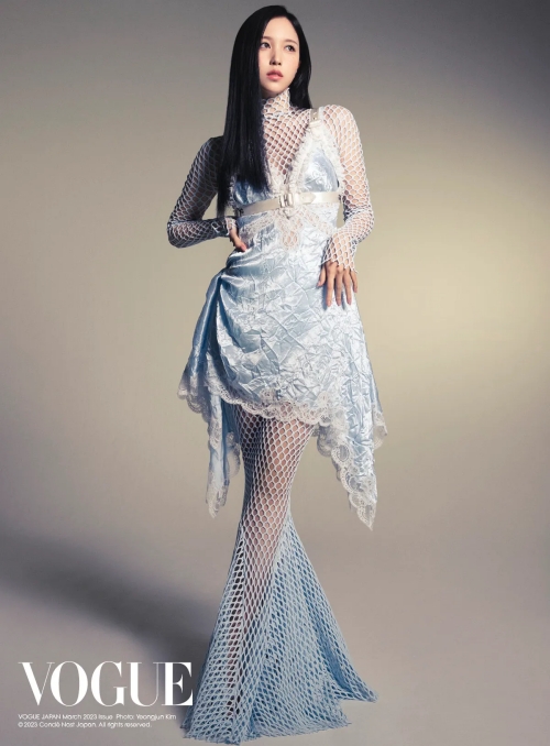 ミナは全身“シースルー”の網ドレスで、さりげない色香を演出。腰に手を当てたポーズでカリスマ性を見せつけている。