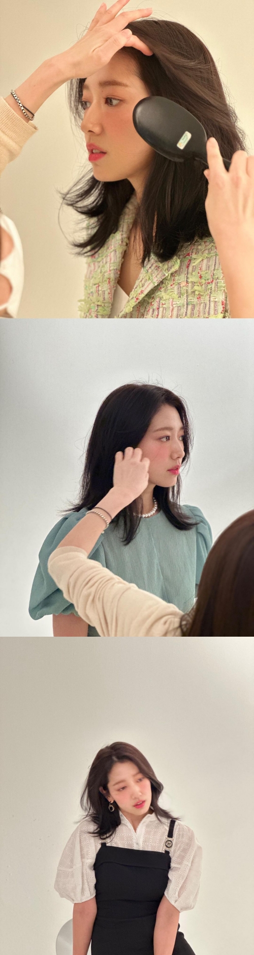 パク・シネはツイードジャケットや、パフスリーブトップス、シフォン素材のワンピースなど、さまざまなアイテムをフェミニンかつ優雅に着こなした。