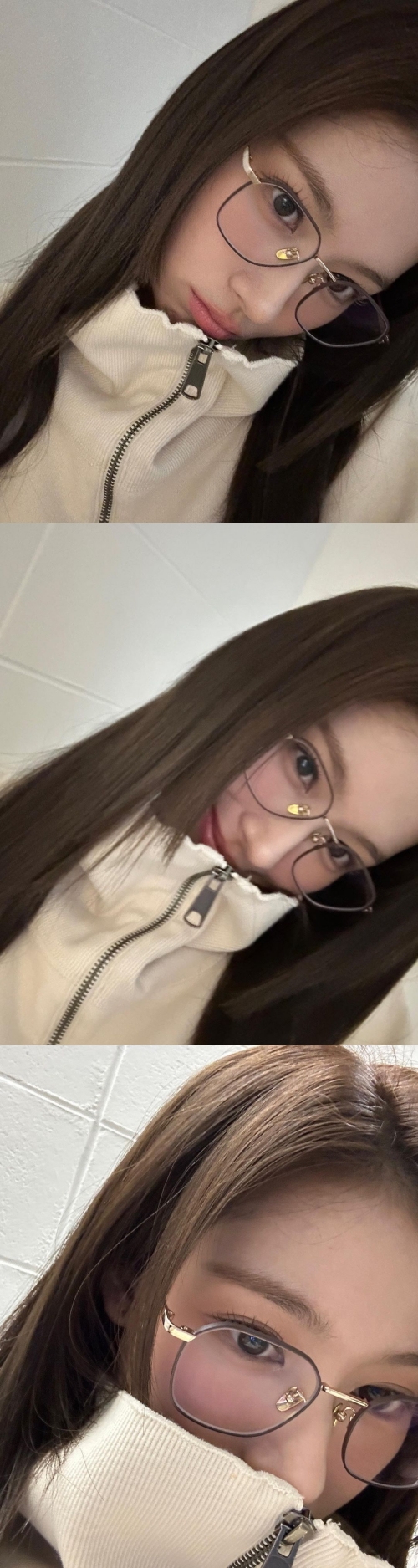 サナはメガネをかけており、髪はそのままおろしている。口元はトップスに隠れているが、その美貌は健在だ。