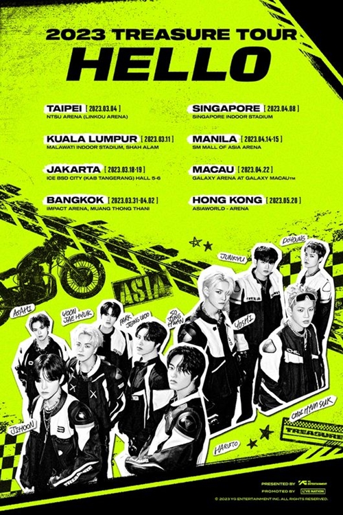 YGエンターテインメントは本日(2月23日)、「2023 TREASURE TOUR[HELLO]」の追加開催を確定。3月31日、4月2日バンコク、4月14日マニラなど計3公演を追加した。
