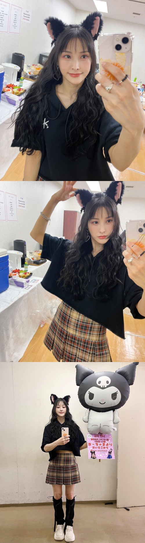 写真をのぞくと、鏡の前で猫耳を付けたパク・ギュリの姿が写っている。