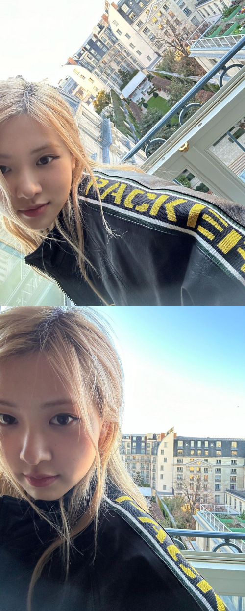 写真にはパリの街並みを背景に自撮りをするロゼの姿が。ノーマルカメラで、加工もしない状態での写真であるにもかかわらず、実物と一切変わらない可愛さをアピールした。