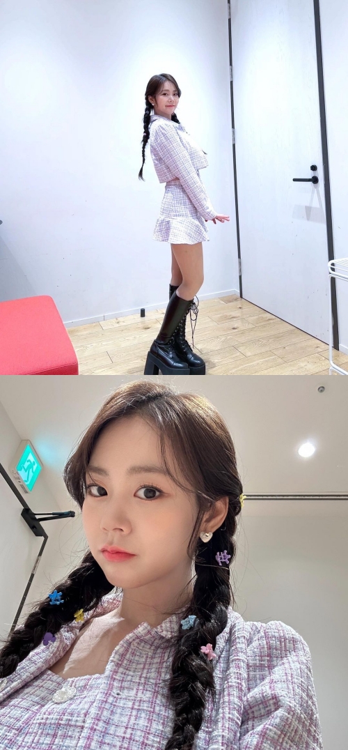 写真には、こちらを見つめてにっこりと微笑むスンヨンの姿が。長い髪を三つ編みにしたキュートなヘアスタイルを披露している。