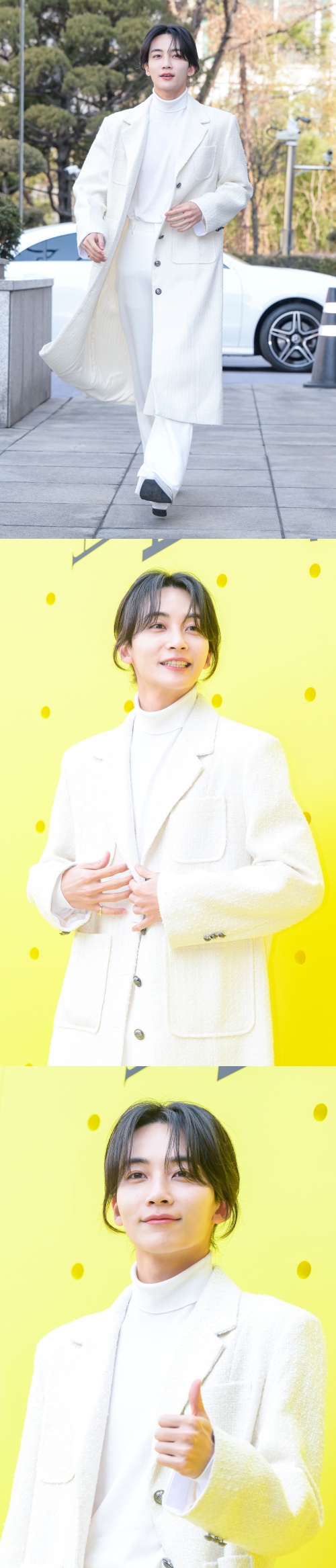 3人揃って、ホワイトコーデで登場。ホワイトスーツ、ホワイトコートで王子様のようなビジュアルを見せつけた。