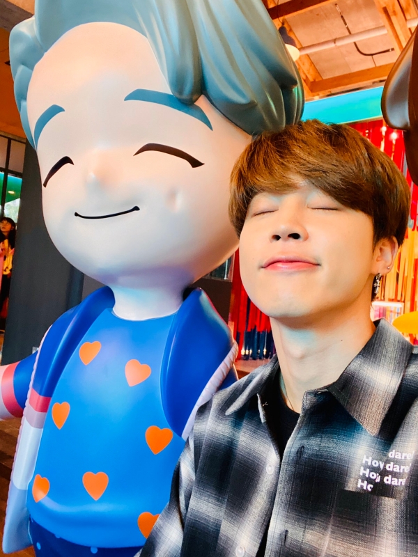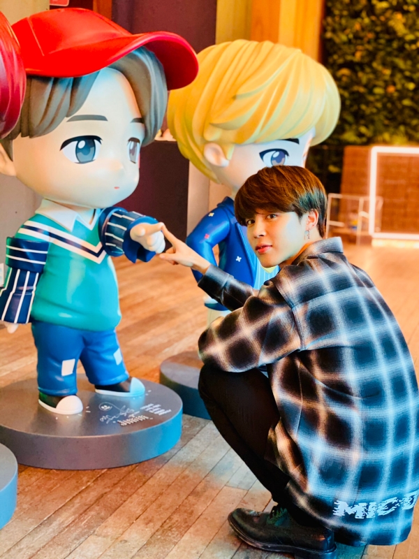 ストア内にある自分のフィギュアや、巨大ARMY BOMBの前でポーズをとるメンバーたちの姿がファンを喜ばせた。