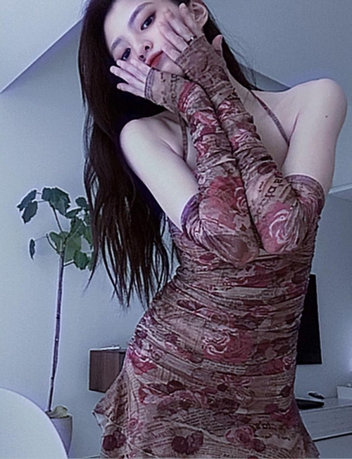 ハン・ソヒはタイトなキャミソールワンピースを着用しており、美しい身体のラインや華奢な腕、白いデコルテが際立つ。