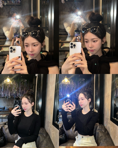 KARINAは3月28日、aespaの公式インスタグラムを更新。黒猫の絵文字とともに数枚の写真を投稿した。