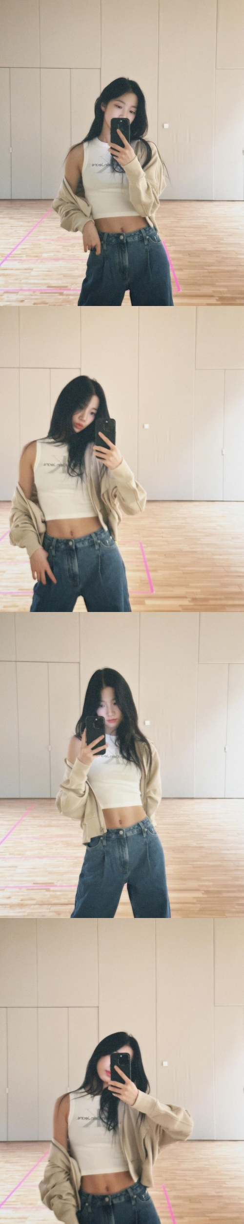 写真には、練習室の鏡の前でスマホを見つめるカズハの姿が写っている。