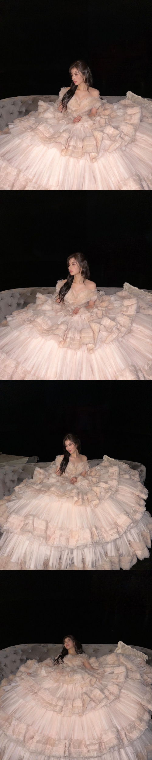 「私が選んだドレス」というキャプションとともに数枚の写真を投稿した。