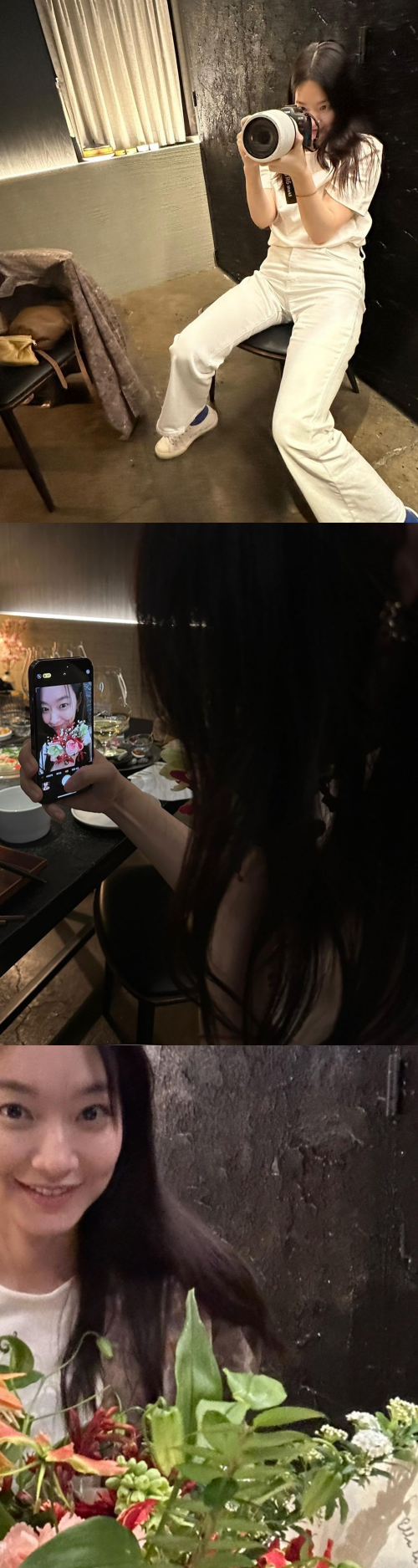 写真には、知人たちとともに誕生日会を行うシン・ミナの姿が。大きな花束を持って自撮りをしている。大きなカメラで一生懸命知人らを撮るお茶目な姿も盛り込まれた。4月5日に39歳になったシン・ミナは、とてもその年齢には見えないその“童顔美貌”で見る者を釘付けにしている。