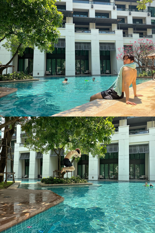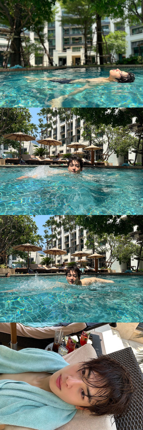 写真には、バンコクを訪れたチャ・ウヌがホテルのプールを満喫している姿が。プールサイドからカメラを見つめているチャ・ウヌは、筋肉質な腕と逆三角形の背中を見せつけた。プールに飛び込む姿や、プールから少しだけ顔を出し満面の笑みを見せるチャ・ウヌ。少し疲れたのか、椅子に横たわって無表情でカメラを凝視する姿で、目を離せなくさせた。