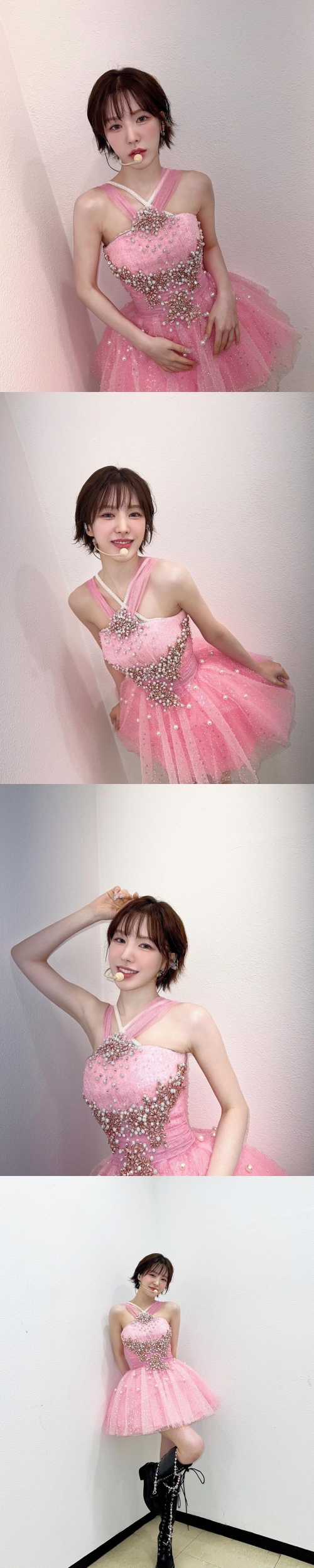 公開された写真でウェンディは、パールがあしらわれたピンクのチュールドレスを着用して幻想的な美しさを披露した。華奢な肩のラインとデコルテが強調されており、見る者の視線を捉えた。