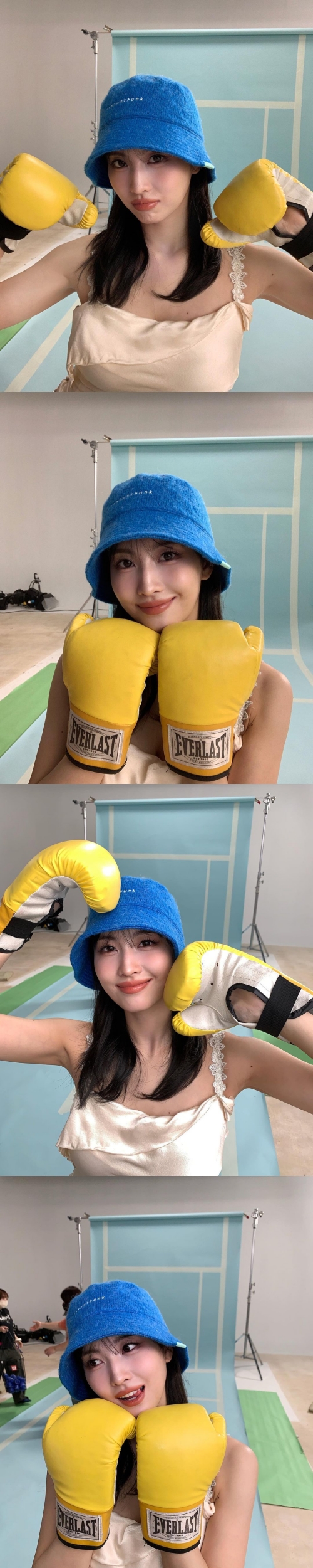 写真をのぞくと、ボクシンググローブをはめてワイルドな表情を浮かべるモモの姿が写っている。