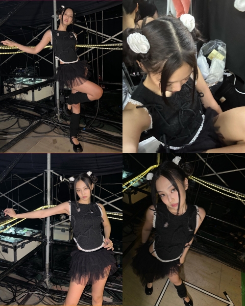 去る4月8、9日、東京ドームでコンサートを開催したBLACKPINK。ジェニーは黒を基調としたモノトーンの衣装に身を包んだ。