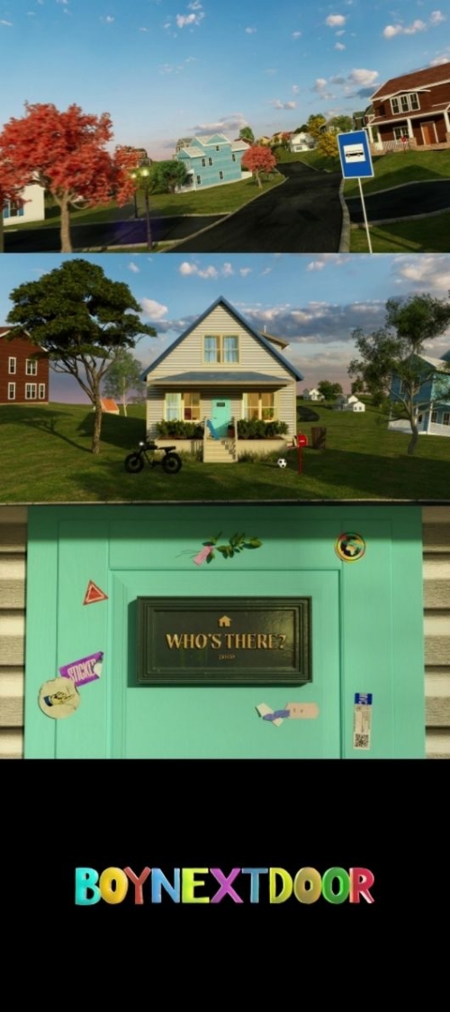 続いて、「Who's There?」という文句が書かれたミント色のドアが開かれ、カラフルな色味の「BOYNEXTDOOR」のロゴが飛び出す。