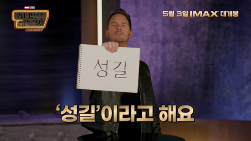 クリス・プラットは映画『ガーディアンズ・オブ・ギャラクシー:VOLUME 3』の公開を控えているなか、PR動画で韓国名も披露した。