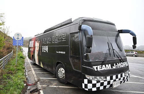 そんななか現場は、訪れた少数のファンを除いては静かな雰囲気だった。多くのファンが「現場訪問を控えてほしい」という所属事務所の要請に応じたのだ。その代わりにファンらは現場に、J-HOPEの顔をラッピングした大型バスを送って除隊の日を待つ気持ちを伝えた。