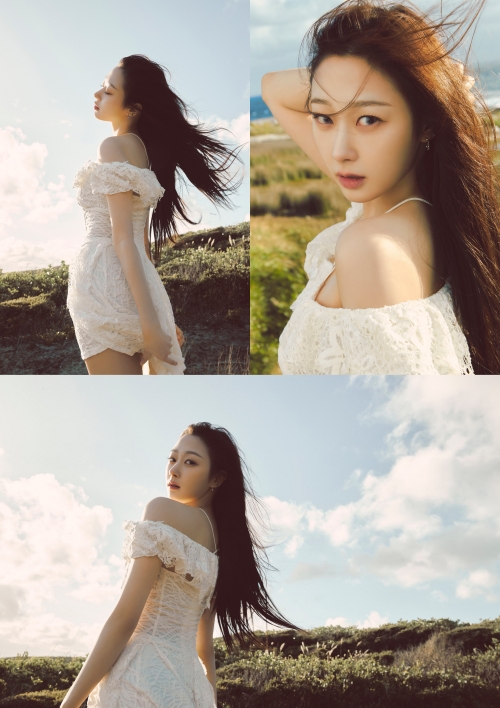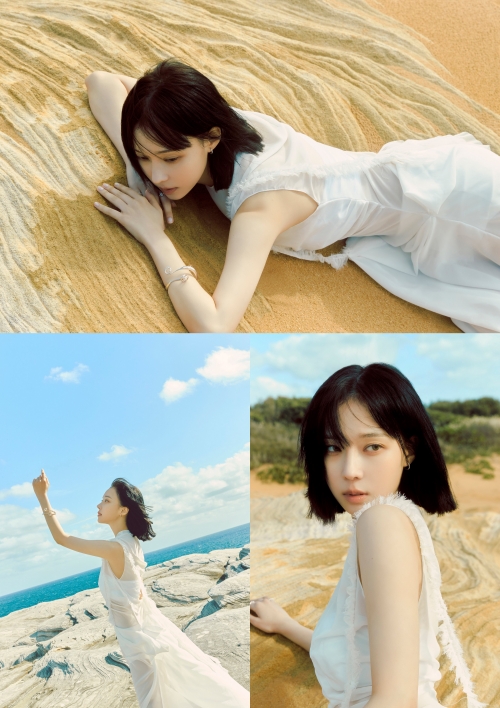 砂浜に横たわりながら深みのある眼差しでどこかを見つめるウィンター、草原で気持ちよさそうに風に揺れるジゼルと、2人は壮大なスケールの下、幻想的な美しさを放つ。