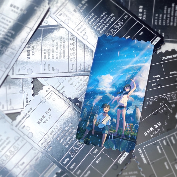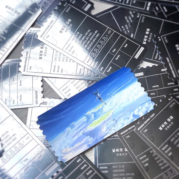 『天気の子』の色鮮やかな美しいシーンがプリントされ、高いクオリティを誇るオリジナルチケットは、Megaboxの会員を対象に配布され、公開当日の1回目の上映からなくなり次第終了となる。