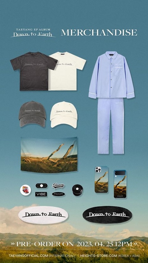 『Down to Earth』オフィシャルグッズは4月25日12時、「HEIGHTS STORE」のウェブサイトを通じて販売される。パジャマ、ファブリックポスター、ラグは2週間、数量限定で独占予約販売されるという。