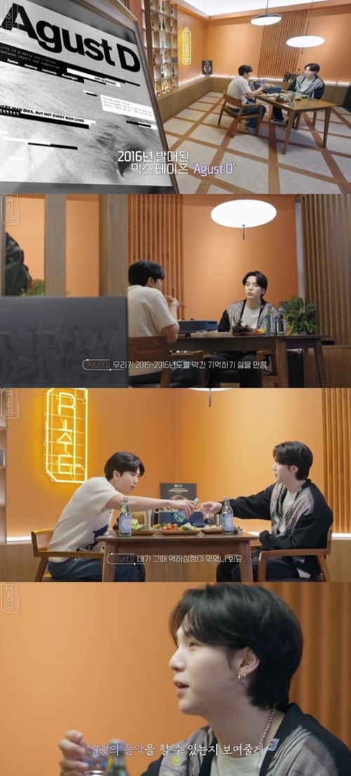 またRMは「兄さんが考えた時、Agust DとSUGAは違うキャラクターなのか」と気になったという。その点についてSUGAは「色々なことを分けておく。“Prod.SUGA”と“SUGA”と“Agust D”と分けてきた。Prod.SUGAは外部作業をする時に使う名前なので、常に相手と大衆に合わせなければならない。SUGAはBTSメンバーの一人なのでそこに集中し、Agust Dは私が言いたいことを加減なく話すのが本来の考えだった。フィルターなしで」と述べている。