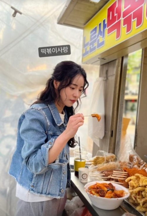 「トッポッキ愛してる」という文とともに公開された写真には、屋台の前にいるイム・ジヨンの姿が。熱い眼差しでトッポッキを見つめており、愛らしい魅力を発揮している。