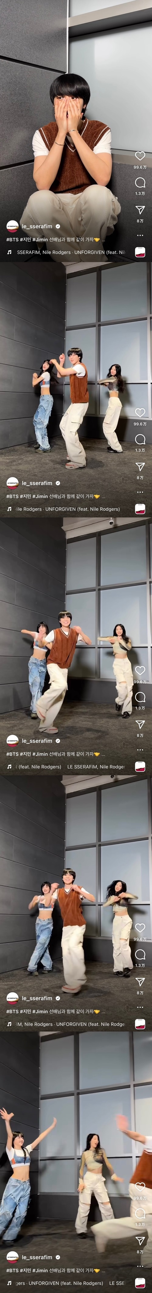 当該の投稿では、BTSのJIMINがサプライズ登場。カズハ、ウンチェとともに『UNFORGIVEN』の振り付けを華麗に踊った。