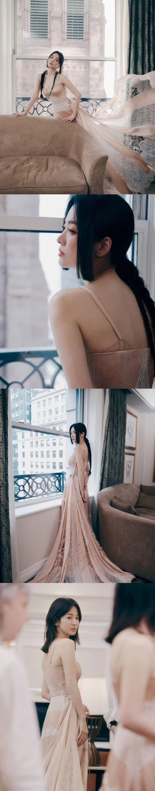 「女神」ソン・ヘギョ、シースルードレスからのぞく“輝く美肌” NYで見せた美貌が話題に 【PHOTO】