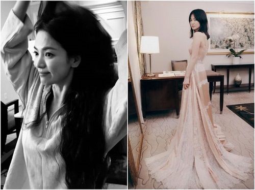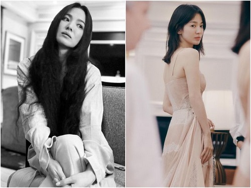 この日、ソン・ヘギョはこれまで見たことのない“姫カット”と優雅な魅力を兼ね備えたヌードトーンドレスを披露した。