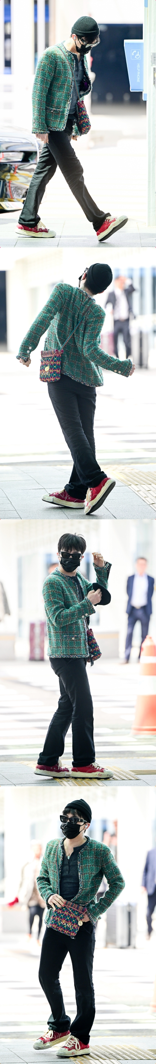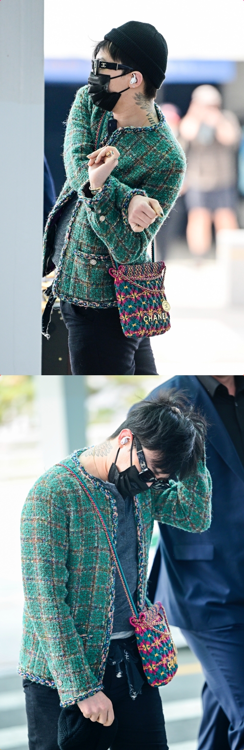 BIGBANGのG-DRAGONが、個性的なスタイルで韓国を発った。