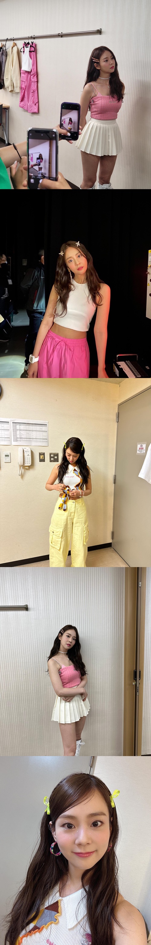 当該の投稿で最も目を引くのは、若々しさあふれる衣装たちだろう。ピンクやイエローといった明るいカラーだけでなく、みずみずしい素肌を惜しみなくさらけ出すようなデザインも目を引く。