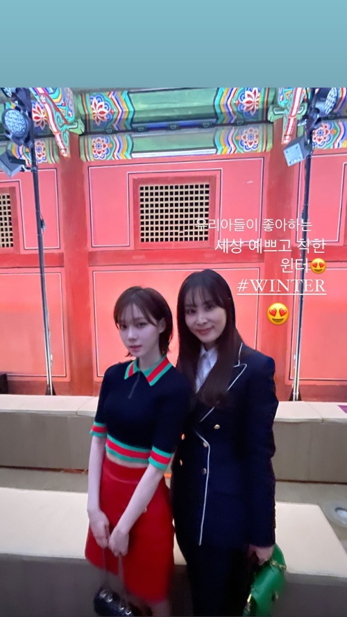 写真には、5月16日にソウル・景福宮で開かれたファッションブランド「GUCCI(グッチ)」のファッションショーで出会ったガールズグループaespa(エスパ)のWINTER(ウィンター)と撮ったコ・ソヨンの姿が。