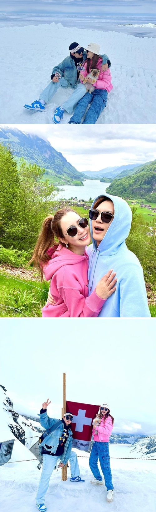 公開された写真には、SE7ENと妻で女優のイ・ダヘが、スイス・グリンデルヴァルトでの新婚旅行を楽しむ様子が収められている。