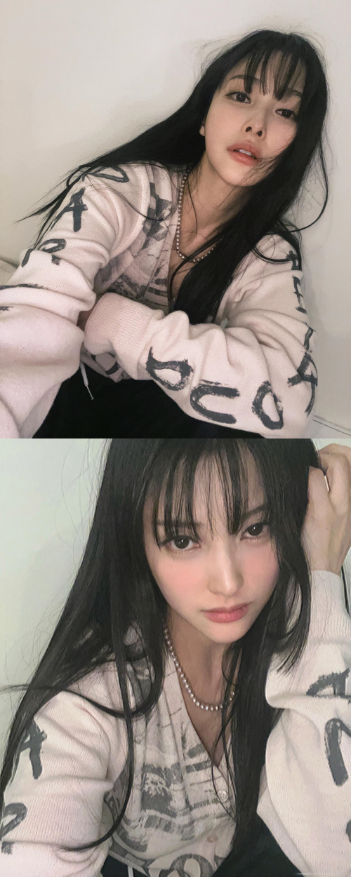 写真には、いつもと異なる雰囲気を醸し出すギュリの姿が。いつも通り、前髪を下ろし、真っ黒なストレートヘアのギュリ。普段より少し艶っぽい印象のメイクをしたようだ。