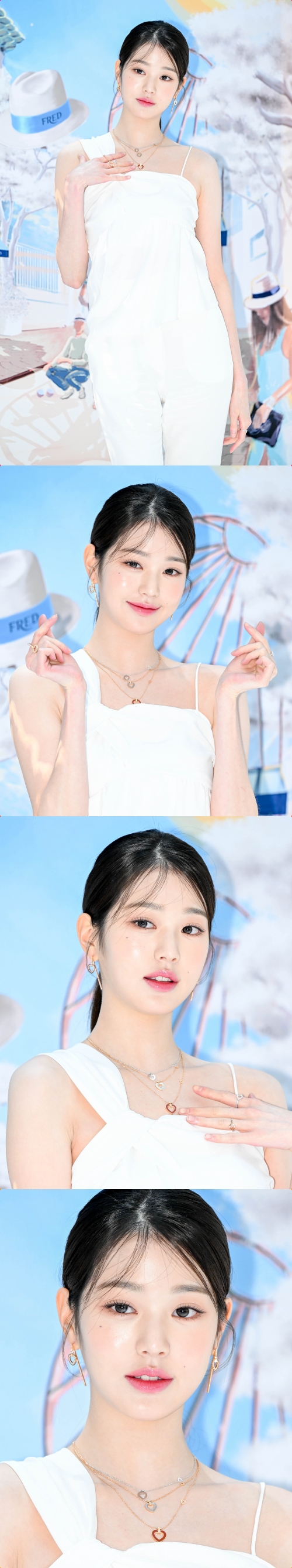 白のオールインワン姿で訪れたウォニョンは、透明感あふれる美肌と圧巻の美貌を披露。フォトタイムに応じながら持ち前のビジュアルで見る者の視線を捉えた。