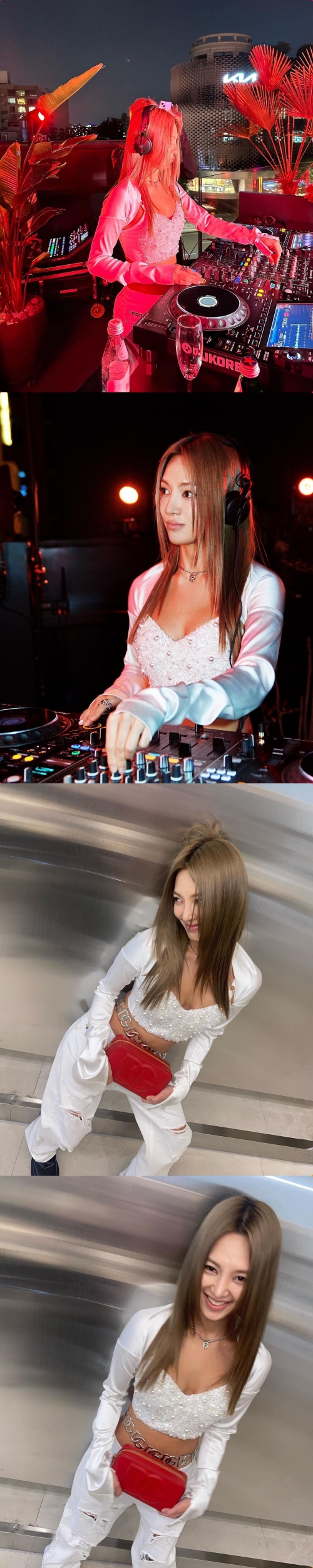 投稿された写真には、イベントを楽しんだり、DJプレイをしたりするヒョヨンの姿が。デコルテやお腹があらわになったトップスでメリハリのある体を披露しており、焼けた肌がヘルシーな印象を与えている。