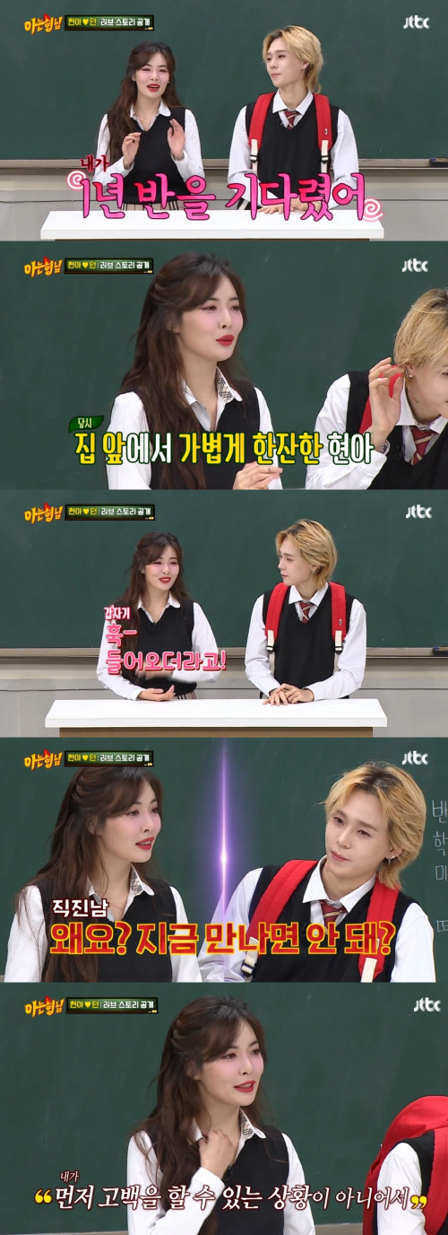 「先に告白したのは誰か?」というMCの質問に対し、ヒョナは「悔しいけど、私が1年半を待った。私が片思いをしたのだ」と告白。