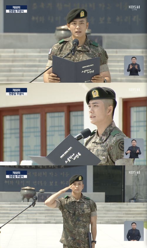 6月6日午前、韓国の国立墓地の国立ソウル顕忠院で第68回顕忠日(韓国の殉国者や戦没将兵を追悼する記念日)追悼式が行われたなか、カン・テオが壇上に立った。