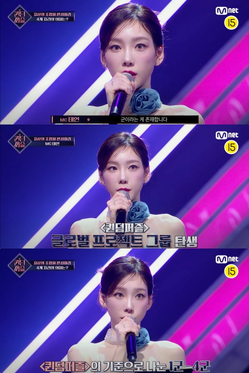 そこで、番組の司会者でありK-POP界の先輩であるテヨンが「K-POPシーンには“軍”というものが存在する。『QUEENDOM PUZZLE』の基準で軍を分けた」と話し、参加者の音楽放送1位の総回数(50%)、発売したアルバムの中で初動最多販売量(50%)を基準に点数に換算して軍の基準を分けたと説明。参加者たちは驚きの様子を見せた。