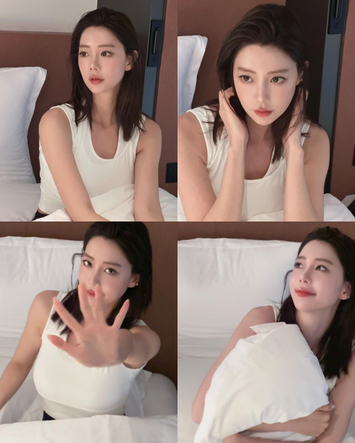写真には、ベットに寝転ぶクララの姿が。真っ白なクロップTシャツにミニスカートを着て、女性らしい柔らかな化粧で純粋さを醸し出した。挑発的な目つきでカメラを見つめたり、悩ましげな表情で幻想的なオーラを放ったり、見る者を虜にした。