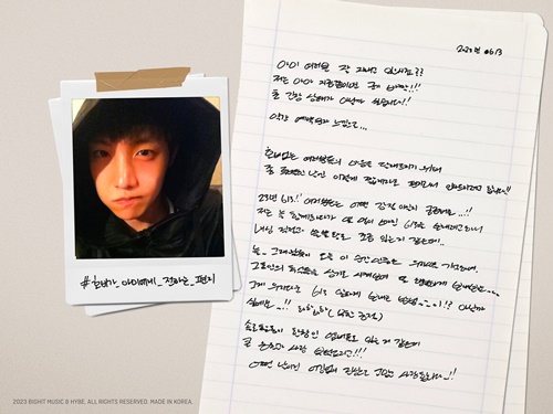 BTSの公式Twitterには12日、「ホビ(J-HOPEの愛称)がARMY(BTSファンの愛称)に伝える手紙。どんな日も間違いなく、心から感謝し愛しているよARMY」というツイートとともに、J-HOPEの直筆手紙が公開された。
