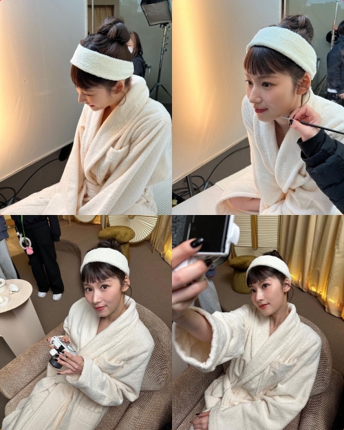 インスタグラムに投稿された写真には、シャワーガウンを着用してヘアバンドをしたサナの姿が写っている。愛らしい表情と透明感あふれる肌でファンの心をときめかせた。